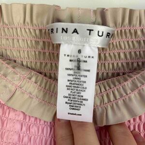 Very cute high waist smock waist shorts. Color: bubblegum pink outside and tan inside. Content: very cool thin polyurethane... kind of soft with structure on the outside and lined with polyester on the inside.. Two front patch pockets. Like new condition. No stains or rips.