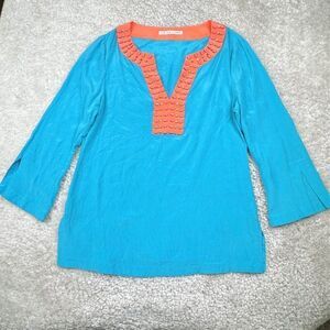 Trina Turk Silk Beaded Embellished Tunic Blue Orange