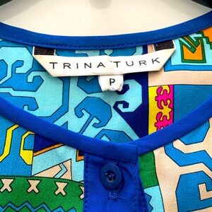 Gently worn ! Vibrant Trina Turk 100% silk button up blouse . Dress it up Dress it down ! It's really so pretty on . Petite