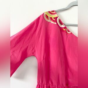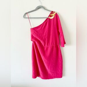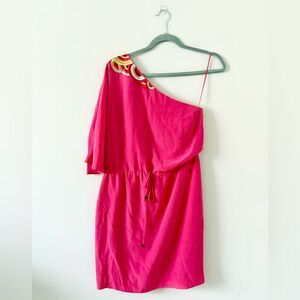 Trina Turk Silk One Shoulder Dress with Embroidery in Bright Pink - Size 2