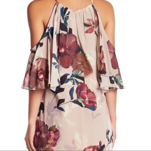 Trina Turk | Silk Seraphima Floral Waterfall Cold Shoulder Dress Size 0 XS