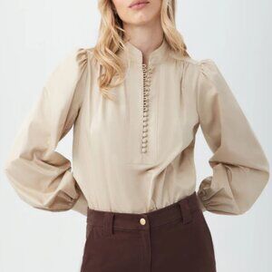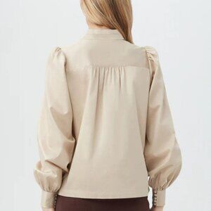 Trina Turk 'Sisi' Long-Sleeve Cotton-Sateen Blouse Top, Sahara Stone