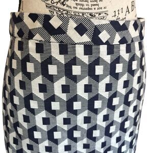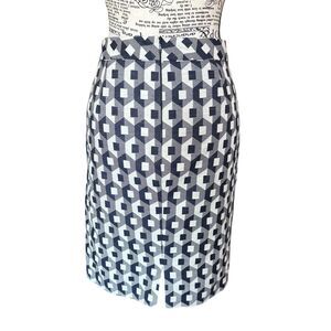Trina Turk Size 10 Blue White Geometric Designer Pencil Skirt