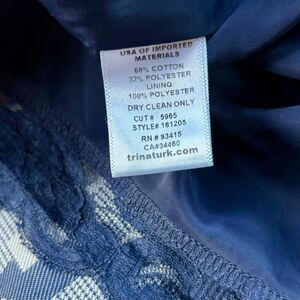 Elevate your wardrobe with this stunning Trina Turk pencil skirt. The multicolor geometric pattern is sure to turn heads and the zip closure adds a touch of sophistication. This skirt is made of a blend of polyester and cotton and should be dry cleaned only. It features a mid-rise waist, straight pencil style, and knee-length cut. The skirt is lined and has button and zipper accents for added flair. It is perfect for any occasion and can be paired with your favorite blouse or top. This designer skirt is a must-have for any fashion-forward woman and is made in the United States.