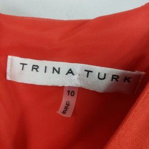 Trina Turk Size 10 Lined Mini Ruffle Zip Back Sleeveless Halter Shift Dress