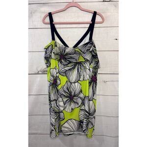 Trina Turk Size 14 Dress Neon Yellow Navy Trim Flowers