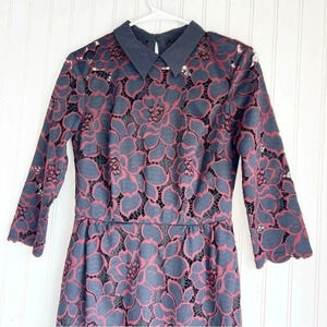 Trina Turk Size 2 Black & Brandywine Lace Killian Mini Dress