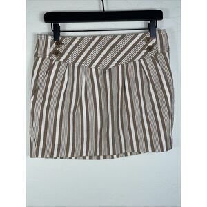 Trina Turk Size 4 Mini Skirt Tan Cream Stripe Miniskirt Linen Cotton