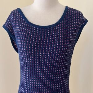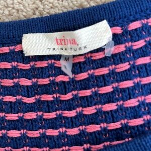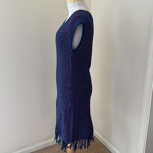 Trina Turk size medium navy with pink knit cotton cover up fringe dress. Can be worn as a dress too. Gently used.