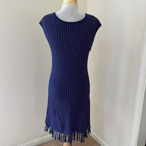 Trina Turk Size M navy with pink knit cotton cover up fringe dress