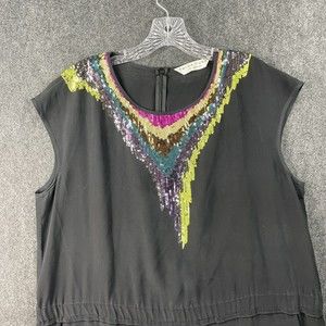 Trina Turk Size Romper Shorts Black Silk Embroidered Sequin Size Large?. Has a tiny spot, shown on the pictures, its on the front. Also missing the exact size but includes the measurements