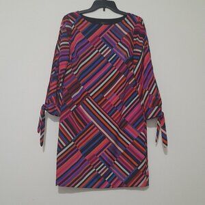 This listing is for Trina Turk Size S Jaxon Asymmetrical Stripe Split Sleeve Women’s Shift Dress