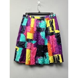 Trina Turk Skirt Womens Size 2 Bright Colorful Mini Silk Cotton Abstract Pleated