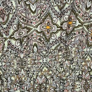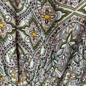 Item is New with Tags. High neck with loop + button closure, Elastic stretch accordion waist, Cabana green print, 100% Polyester. PLEASE SEE ALL PHOTOS. Measurements taken laying flat:
