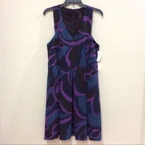 Trina Turk Sleeveless Dress A-Line Purple Blue Black Marcia Sz 10 NWT