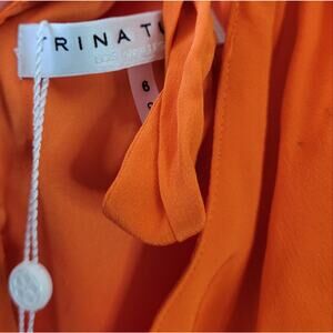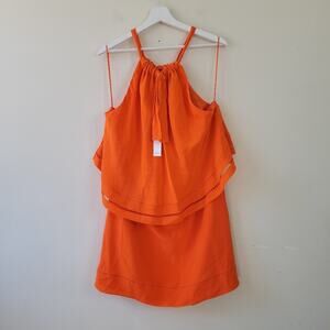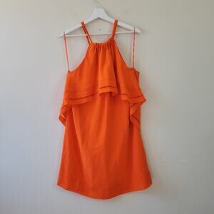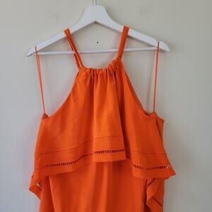 Trina Turk | Slim Solid Silk Tiered Dress 100% Silk, Lining: 100% Polyester -Ladder stitch detail -Halter neck ties at back -Imported -Dry Clean Color: Caliente Orange Style: 174300