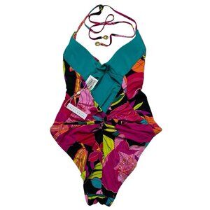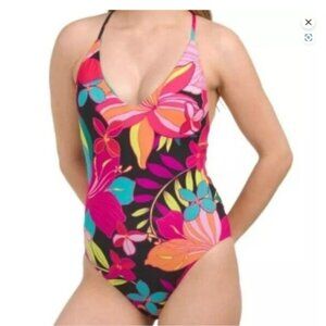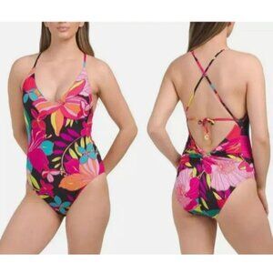 Trina Turk Solar Swimsuit Women 6 Dark Floral Strappy Back One Piece Resort Wear