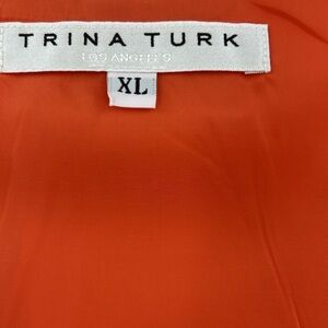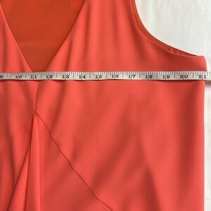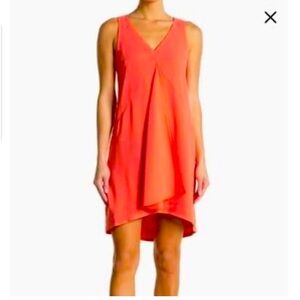 Beautiful Trina Turk fully lined V-neck sleeveless orange dress. With a ruffle down the front. This dress is new never been wore. It has no tags. Please see all photos and measurements are in the photos. If you have any questions, please ask same-day shipping Smoke free home.