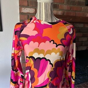 Trina Turk Standard Fan Faire Swim Long Sleeve Tee Rash Guard Pink Orange Sz L