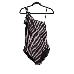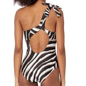 Trina Turk Standard Vivant Asymmetrical One Piece Swimsuit Animal Zebra 8 New