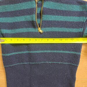 Trina Turk rent the runway, striped half zip sweater, navy teal pullover, winter knit sweater, designer collab sweater, Trina Turk stripe, rent the runway sweater
