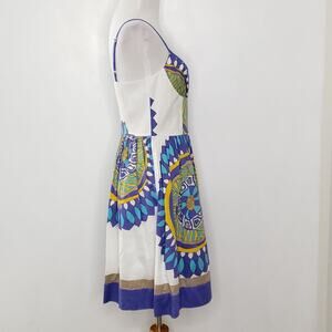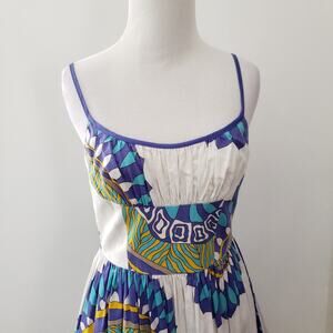 Trina Turk Summer Dress Fit Flare Ruched Bodice Spaghetti Straps White XS