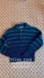 Rib knit zip-up pullover sweater. Wear as a turtleneck or open neck. Navy with green stripes. Great medium weight sweater option as we move into fall.