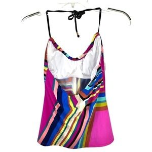 Trina Turk Swim NWT Illusion Stripe Tankini Top Blue Pink Fuchsia Yellow Size 4