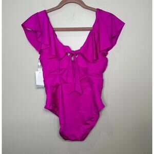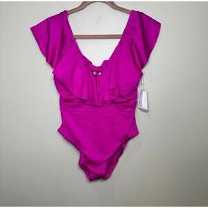 Trina Turk Swimsuit Atlas Ruffle One Piece Plunge V-Neck Sz 8 Pink Resort