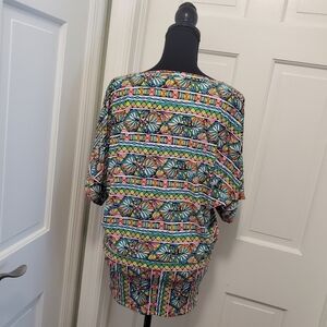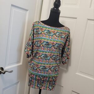 Gorgeous vibrant blend of colors makeup this sweet coverup/tunic/mini dress