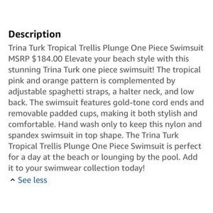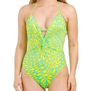 Trina Turk Swimsuit Womens 10 Colorful Tropical Trellis Plunge One Piece Resort