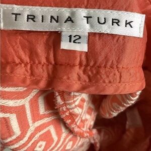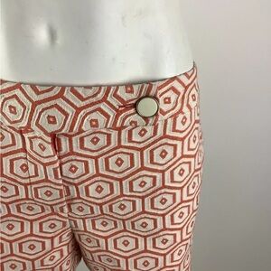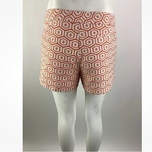 Trina Turk Sz 12 Printed Patterned Shorts Orange White Cotton Polyester