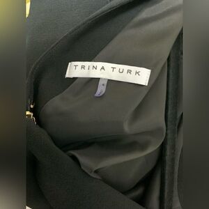 Trina Turk Sz 4 Embroidered Florals Black Lined Dress Tiered Flared 3/4 Sleeves