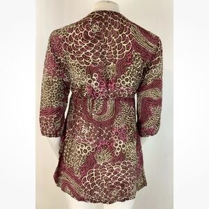 Trina Turk Sz M Cotton Silk Floral Print Tunic Top Pink Empire Waist