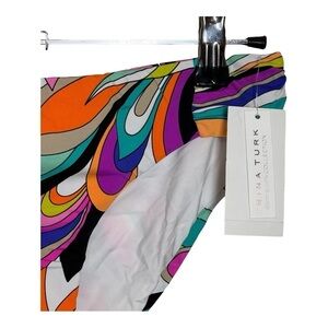 Elevate your swimwear collection with the Trina Turk Tab Side Hipster Bikini Bottoms. These chic bottoms feature a vibrant fan-faire print with bold colors and intricate patterns, offering a trendy statement piece for any beach or pool outing.