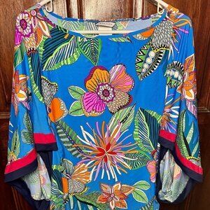 Trina Turk Tahiti Floral Cape-Sleeve Coverup Tunic Dress Size Small