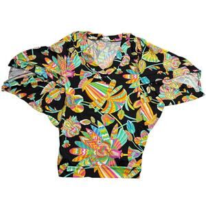 Trina Turk Tahitian Floral Tunic Dress Batwing Stretch Womens Sz Small Cover Up
