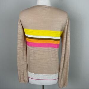 Trina Turk Tan Stripe Cotton Blend Crew neck Sweater XS