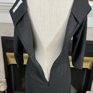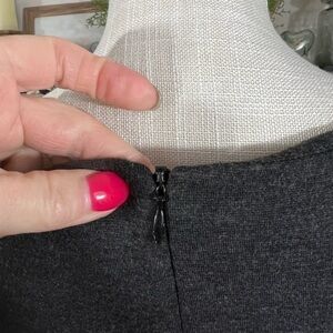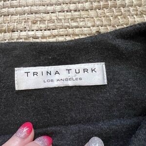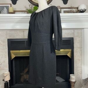 Trina Turk Three Quarter Sleeve Lined Gray Sheath Dress With Defined Waist