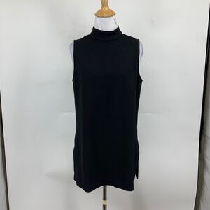 Trina Turk Top Womens 6 Black Mock Neck Side Splits Sleeveless Back Zip Tunic