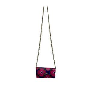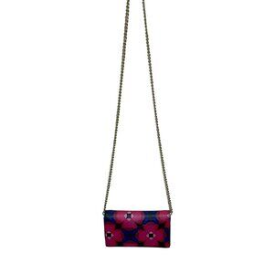 Trina Turk Tri-Fold BRT. PINK Crossbody Purse Gold Chain Multicolor Floral