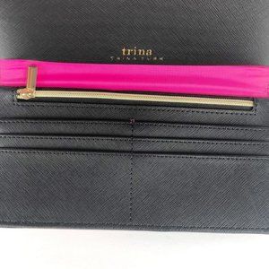 Trina Turk's slim crossbody wallet carries over your shoulder, keeping your smartphone, cash and cards close at hand and secured within its trifold interior