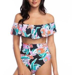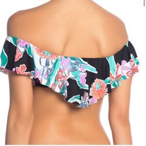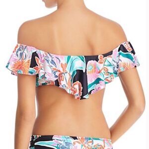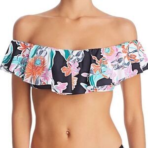 Trina Turk Tropic Wave Ruffle Bandeau Bikini Swim Top Floral 10 Black