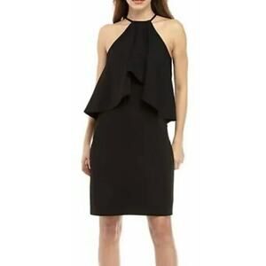 Trina Turk True Love Halter Dress XS Black Layered Ruffle