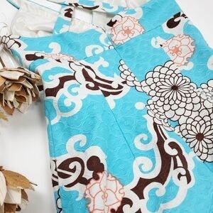 Trina Turk Turquoise White Brown Floral Sundress