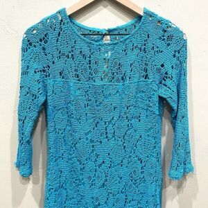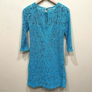 Trina Turk Turquoise Blue Lace Crochet Dress