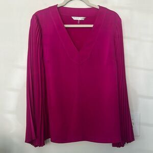 Trina Turk V-neck Almande Pleated Sleeve Pullover Blouse L