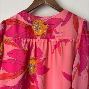 Trina Turk Watson Floral V Neck Blouse Small Long Sleeve Pink