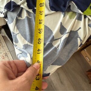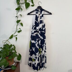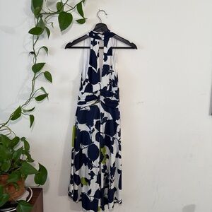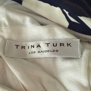 This sophisticated midi dress by Trina Turk showcases a harmonious blend of white and blue, offering a timeless and elegant look. Its graceful silhouette and vibrant colors make it a versatile choice for both casual and formal occasions. Crafted with precision, this dress ensures a flattering fit and a stylish presence.