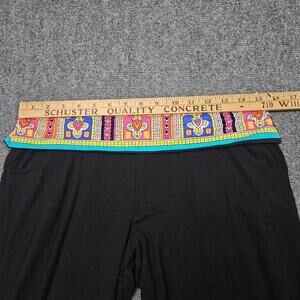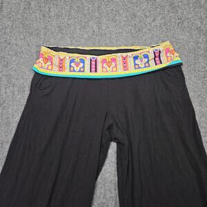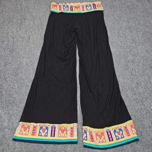 Trina Turk Wide Leg Pants Small Black Aztec Boho Printed Waist Hem Festival